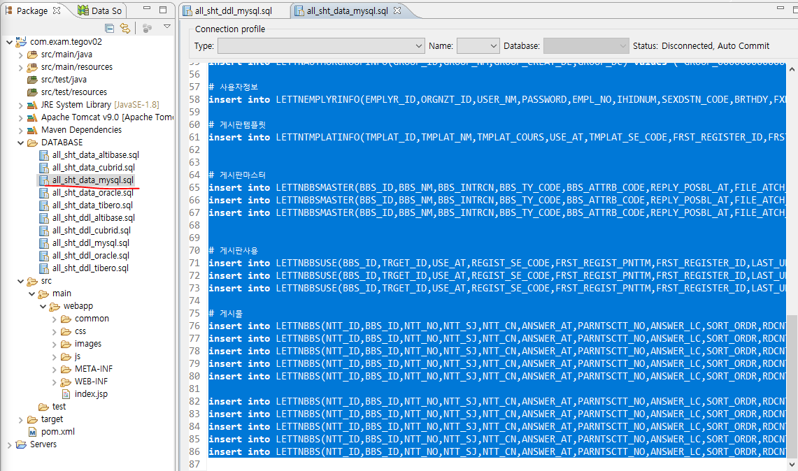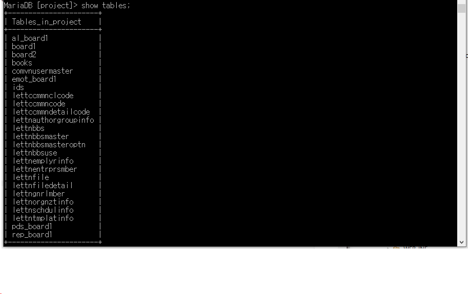 DATABASE 폴더에서 all_sht_ddl_mysql.sql의 내용을 마리아디비에 추가한다.
