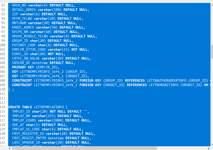 다음으로 all_sht_ddl_mysql.sql의 쿼리문을 모두 복사해서 테이블을 만든다.