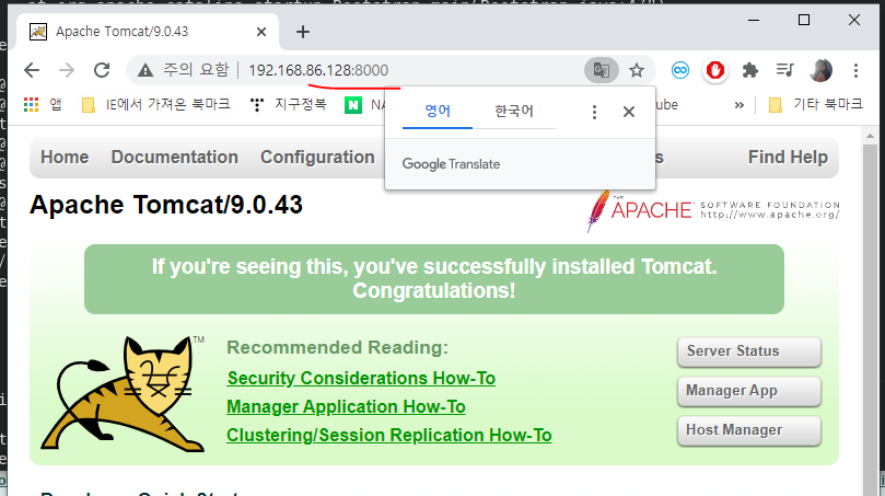 이때 윈도우 브라우저에서 리눅스서버 IP주소로 톰캣서버에 접속하려고 하면 방화벽때문에 접속이 불가능하다. 따라서 방화벽을 풀어줘야한다.