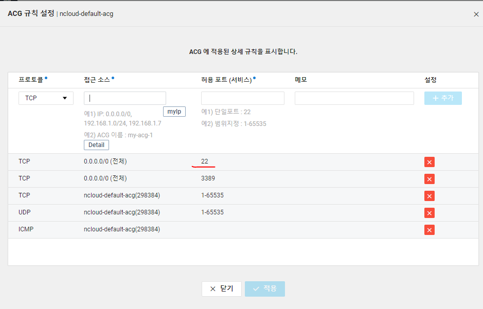 ACG도 아까 만든 포트들을 모두 삭제한다.