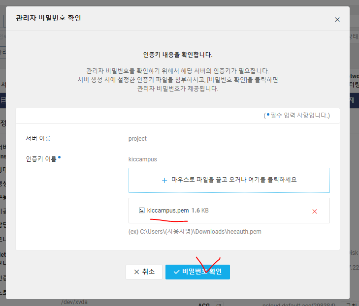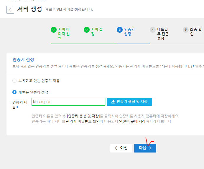 7. 서버에 접속하려면 인증키가 필요하다. 인증키를 다운받고 삭제하면 안된다.