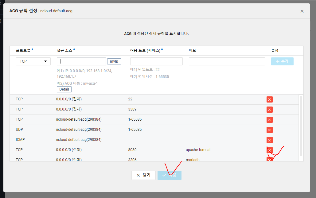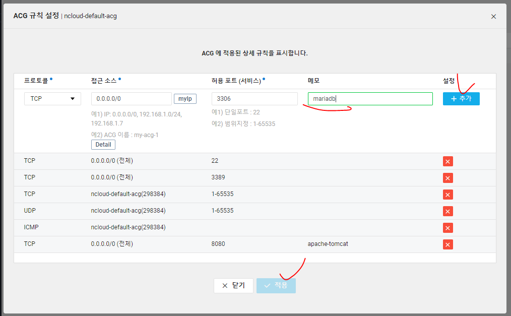 #ACG에 mariaDB 포트 설정 0.0.0.0/0 3306