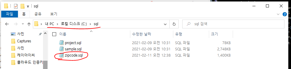 먼저 윈도우 마리아디비에서 sample > zipcode테이블을 덤프파일로 만든다.