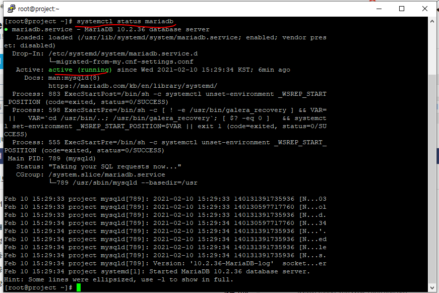 [root@project ~]# systemctl restart mariadb