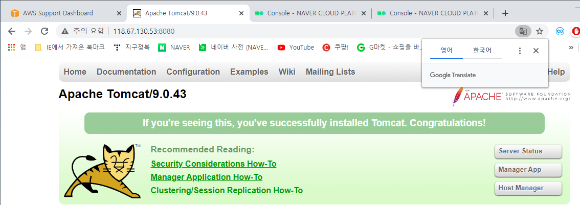 사용자는 tomcat 그리고 비밀번호는 네이버 클라우드 서버 비밀번호이다.