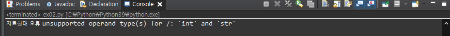 print( '자료형태 오류', e.args[0] ) #e변수에 있는 에러 내용을 출력