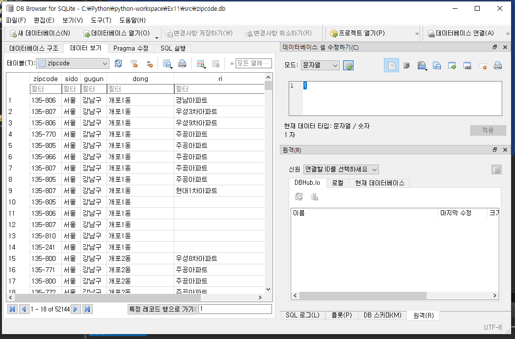 실습) 우편번호 데이터를 데이터베이스에 넣고 우편번호 검색기를 만들기