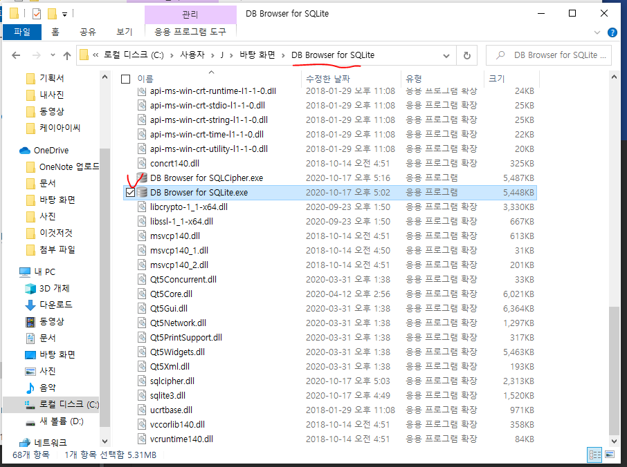 sqlite brower 사용