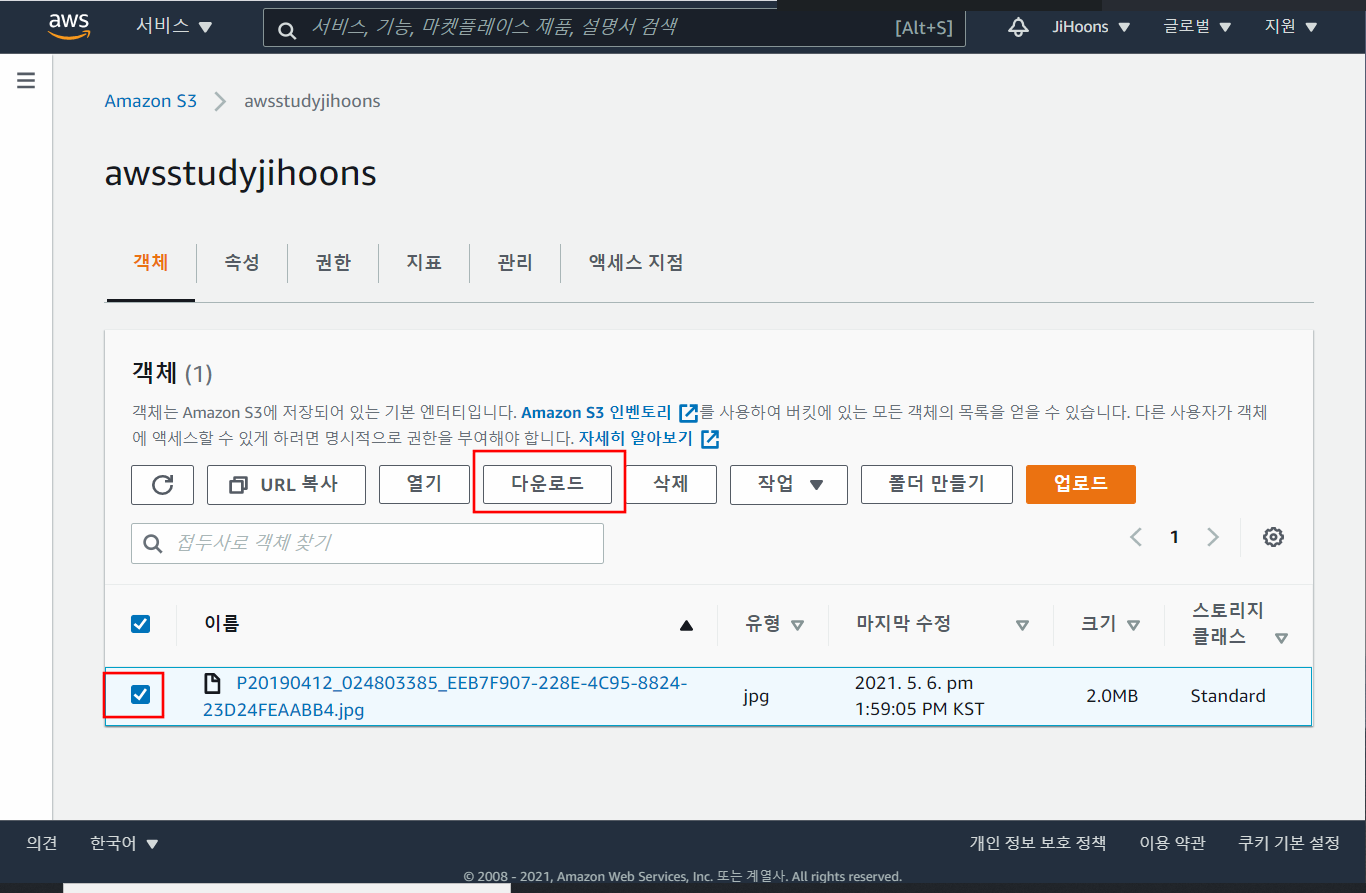 특정 객체를 확인하려면 버킷명과 객체명을 알아야한다.