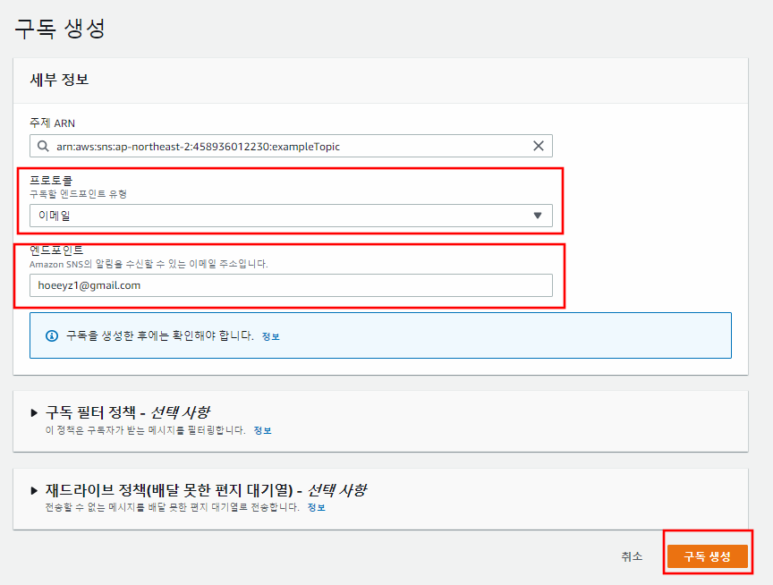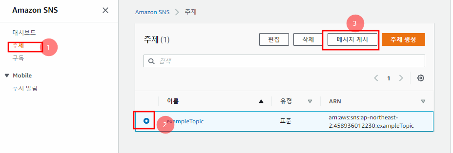 사용자는 자신이 알림받고 싶은 SNS토픽을 구독할 수 있다.