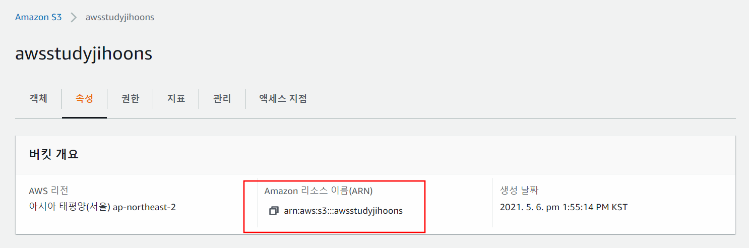 arn( Amazon resource name)은 아래에서 확인할 수 있다.