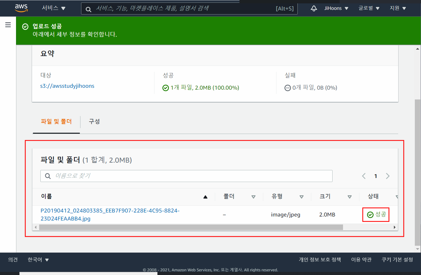 그러면 아래와 같이 성공적으로 파일이 업로드된 것을 확인할 수 있다.