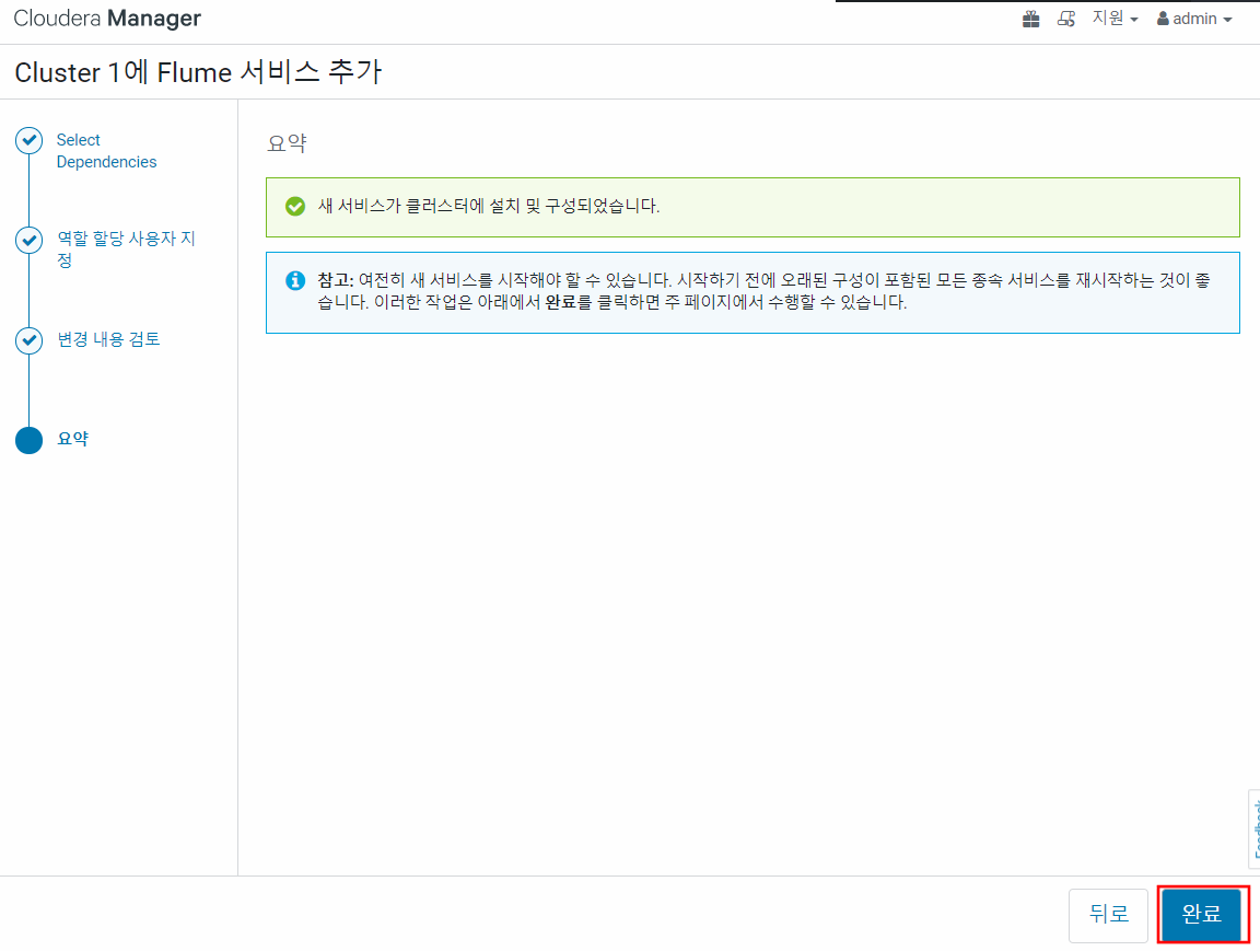 클라우데라매니저를 통해 쉽게 설치가 완료되었다.