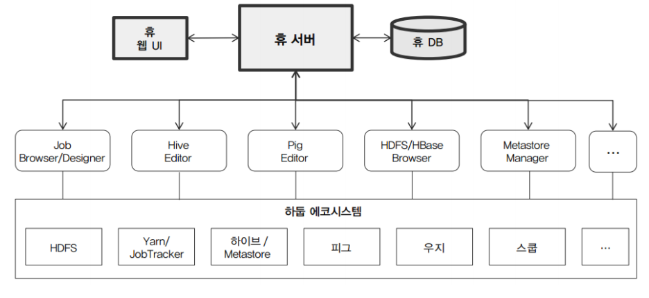 하둡을 기반으로 하이브, 피그, 우지, 스쿱, 스파크 등은 일반 분석가 또는 업무 담당자들이 직접 사용하기에는 어려움이 많다. 따라서 이러한 기술의 복잡성은 숨기고 간편하게 사용하기 위한 소프트웨어들이 만들어졌는데 그 중 하나가 클라우데라에서 만든 휴이다. 휴는 다양한 하둡의 에코시스템의 기능들을 웹UI로 통합 제공한다.