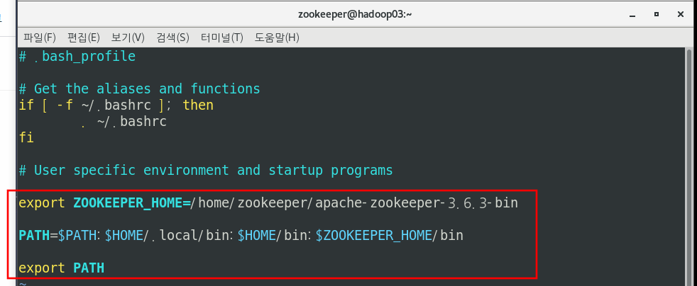 환경변수 적용을 위해 source 명령어 실행