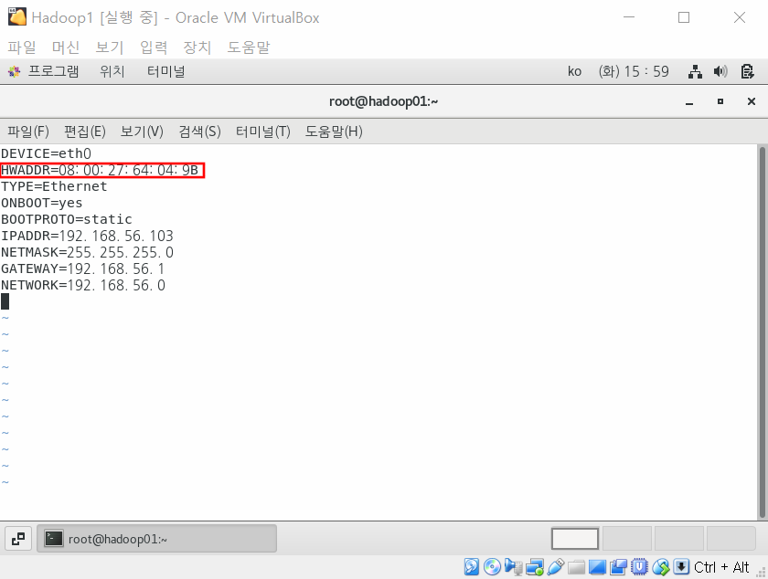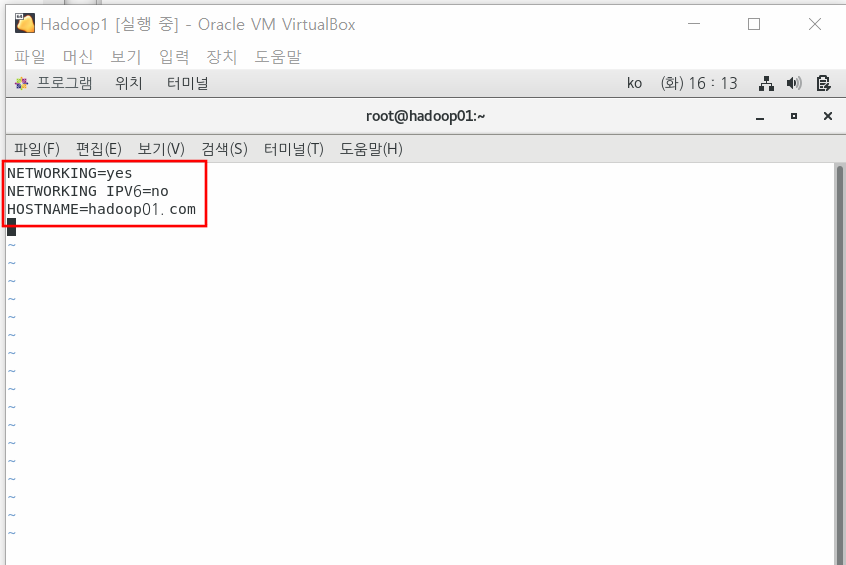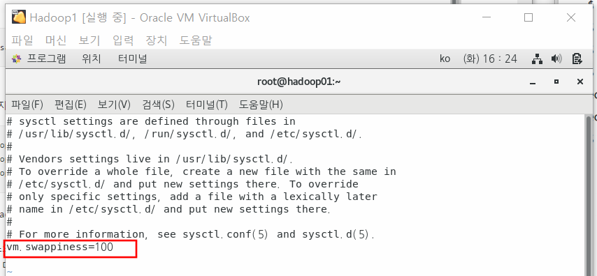 Hadoop1서버를 실행하고 root 계정으로 로그인한다.