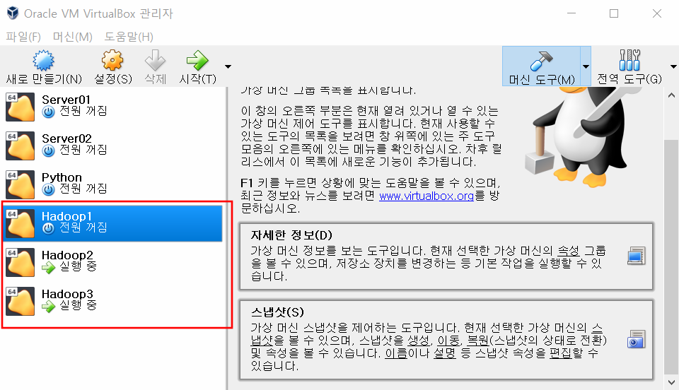 매 단계별로 버추얼박스에서 스냅샷을 잘 찍어놓자.