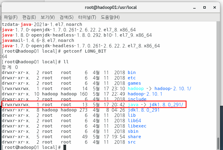 [root@hadoop01 local]# ln -s jdk1.8.0_291/ java