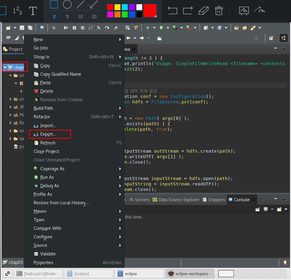 프로젝트 우클릭 - export