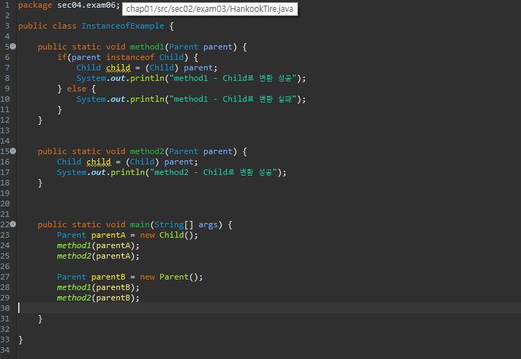 만약 강제 타입이 가능한 지 여부를 알고 싶을 때는 instanceof 연산자를 사용한다. 사용법은 아래와 같다.
