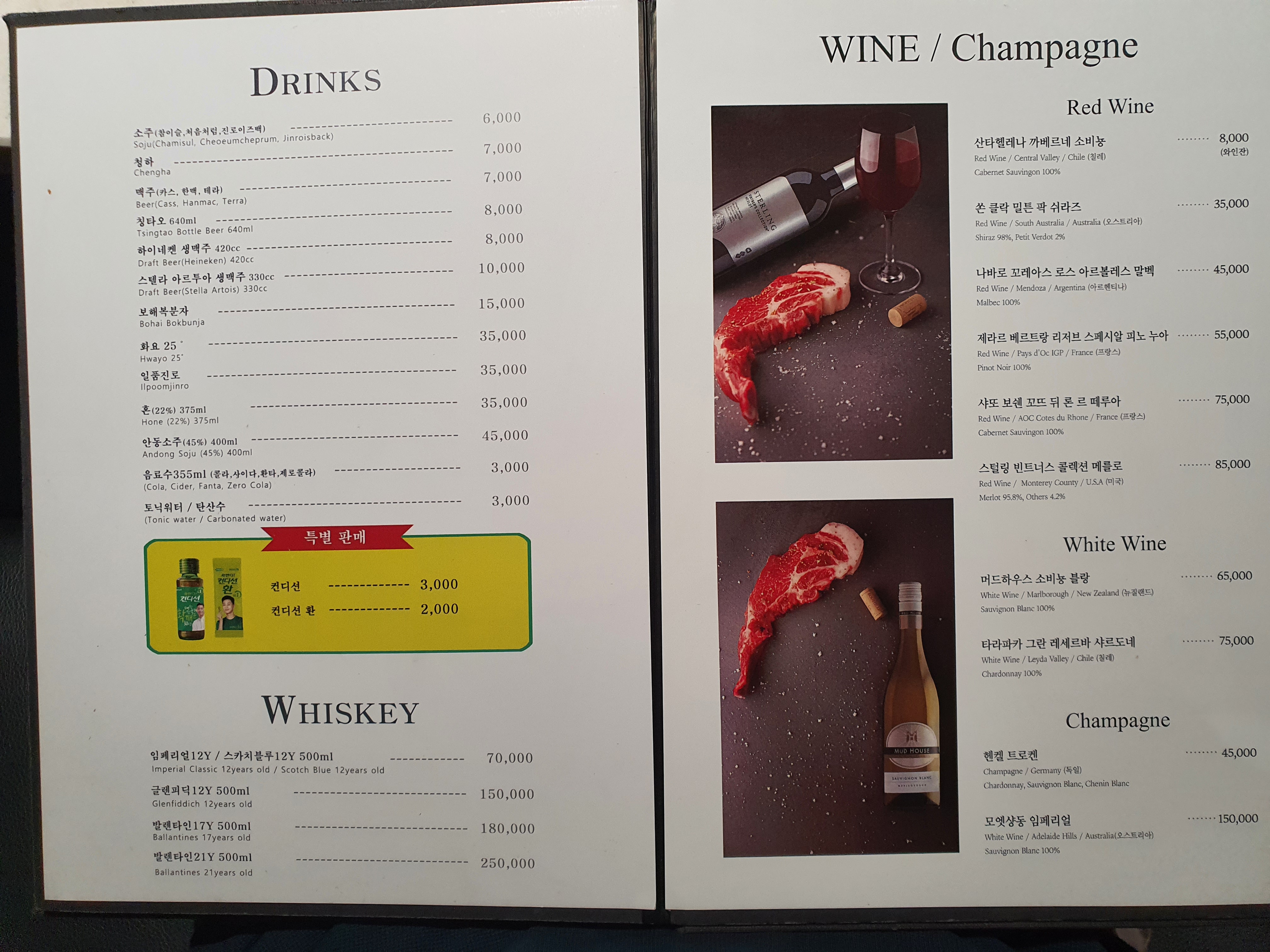 아래는 메뉴 사진들이고 한우부터 해서 돼지고기 등 다양한 종류의 고기가 많았고