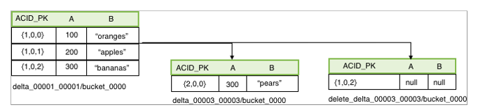 Hive Managed transactional 테이블의 경우 delta file을 사용하여 이를 구현한다.