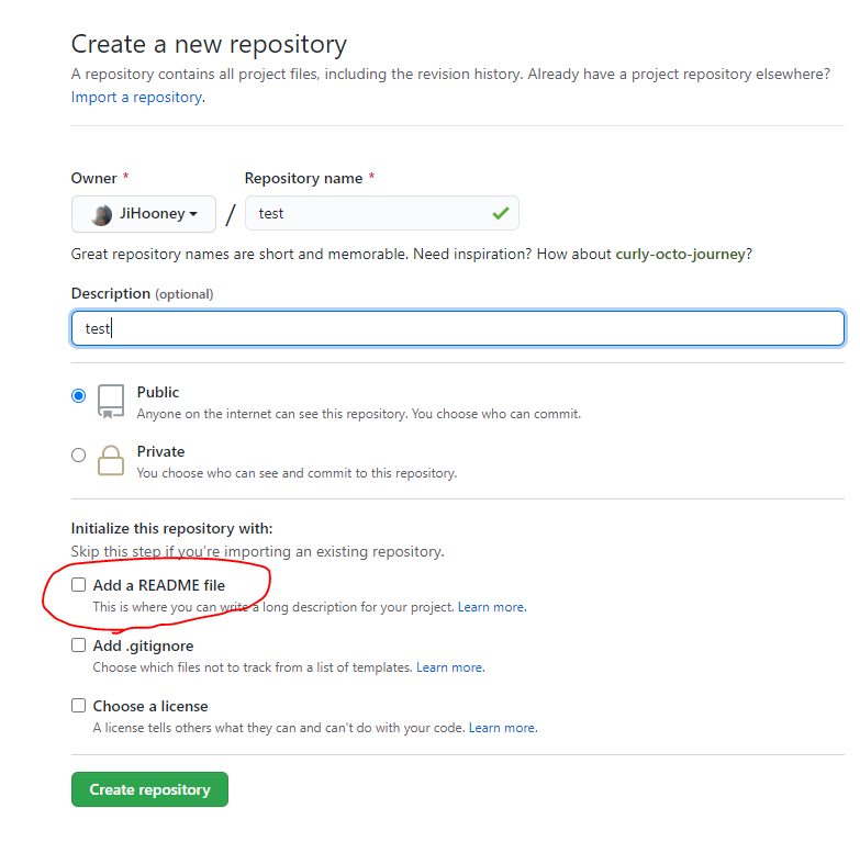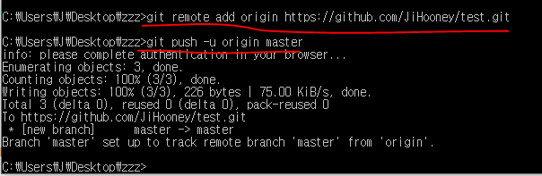 git remote add origin https://github.com/JiHooney/test.git 명령어는 첫 커밋을 할 때만 사용하는 명령어이며