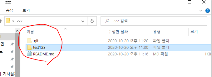 명령어를 실행하고 폴더를 보면 깃 저장소가 생긴 걸 확인할 수 있습니다.