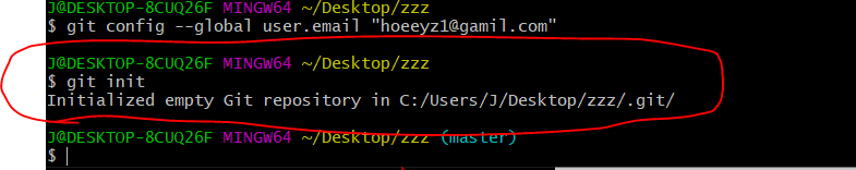 이제 git init 명령어를 통해서 자신의 워킹디렉터리에 깃 저장소를 생성해 줍니다.