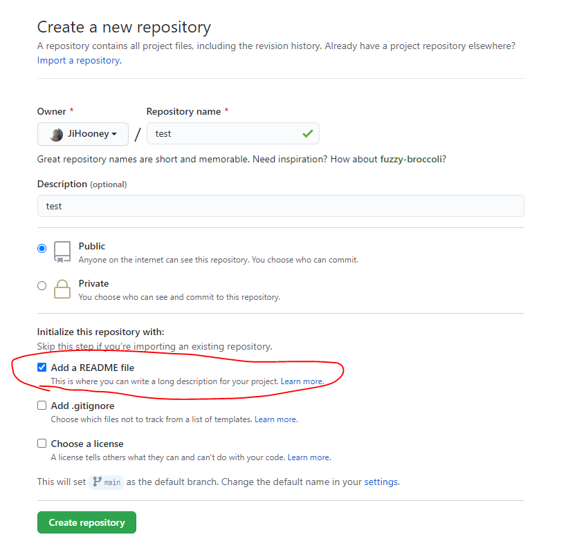 다음으로 README를 생성하는 경우를 보겠습니다.