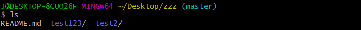 ls 명령어를 통해 현재 master 디렉터리 안에 있는 디렉터리 확인한다. test2와 test123이 있음을 알 수 있다.