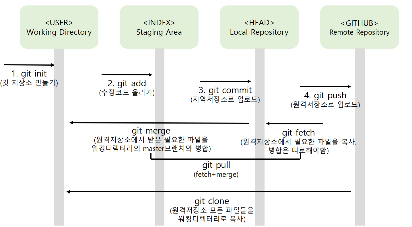 - Staging 영역 git add를 통해서 수정된 코드를 올리는 영역