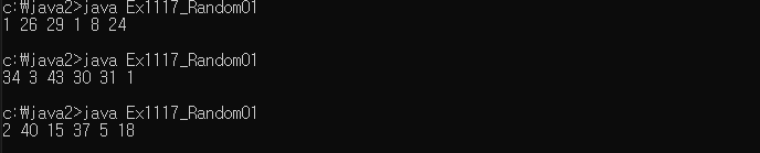 | int | nextInt(int n) | int 타입의 난수를 리턴 ( 0 <= ~ < n ) |