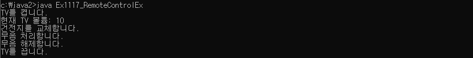 디폴트메소드는 인터페이스에 이미 구현되어 있으므로 구현클래스에서 구현할 필요가 없다.