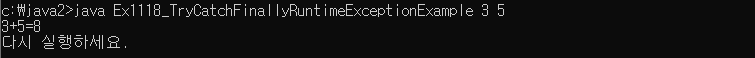 이때 "다시 실행하세요"는 finally구문이기때문에 무조건 실행된다.