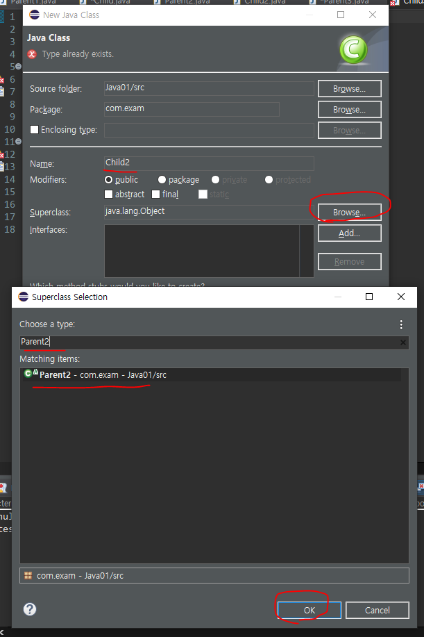 모든 예외 클래스들은 java.lang.Exception 클래스를 상속받는다.