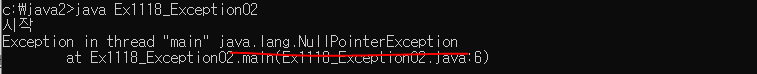 이번에는 문자열 변수에 null일경우 java.lang.NullPointerException 에러가 나는 경우를 확인하자.