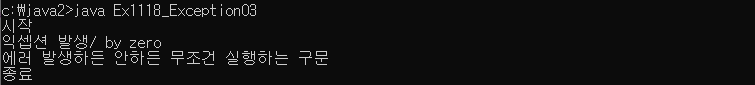 System.out.println("에러 발생하든 안하든 무조건 실행하는 구문");