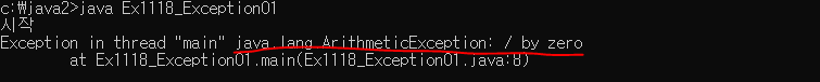 컴파일은 정상적으로 되지만 실행시 java.lang.ArithmeticException 에러가 난다.