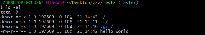 ls -al 명령어 실행하면 로컬저장소인 .git 폴더가 보인다.
