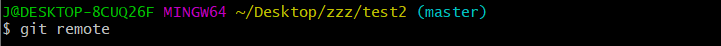 여기서 git remote 명령어를 입력하면 아무런 결과가 나타나지 않는다. 현재 로컬저장소에 연결된 원격저장소가 없기 때문이다.