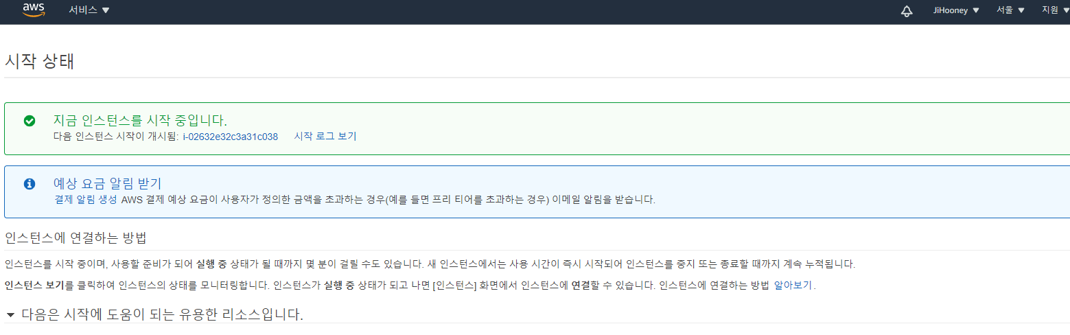 그리고 [인스턴스 시작] 클릭
