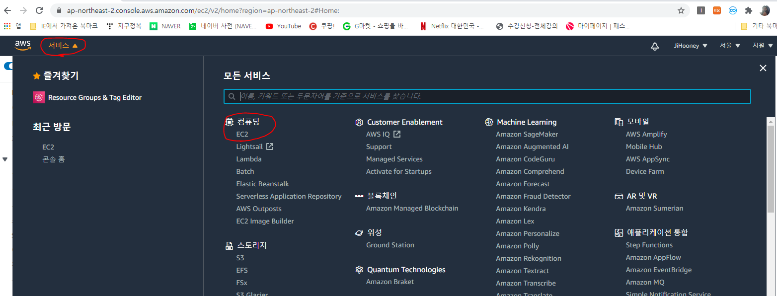 3. [서비스] -> [컴퓨팅] -> EC2로 이동