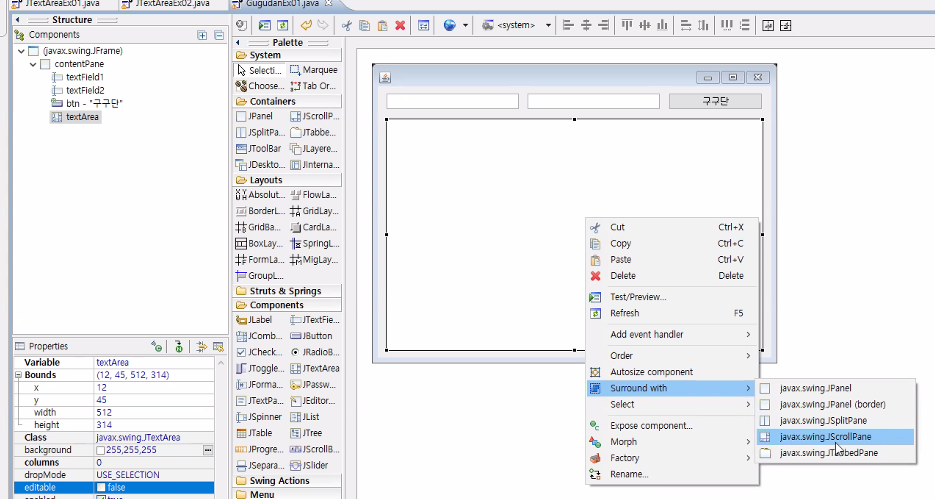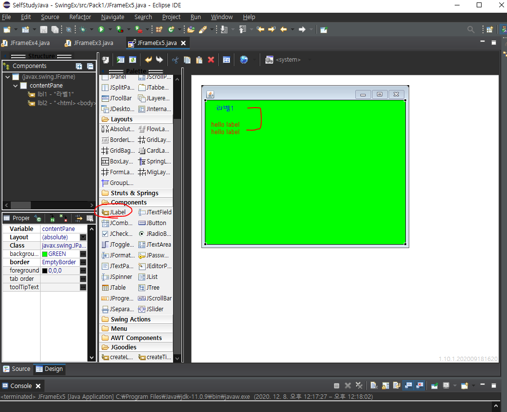 [JAVA] 12/08 | JavaFx(Swing, 프레임, 위치와 크기설정, JFrame, 레이아웃과 위젯, 스레드 실행), Window Builder(jlabel, jbutton, jtextfield, jpassword, jtextarea), 구구단만들기, 우편번호 검색기 만들기