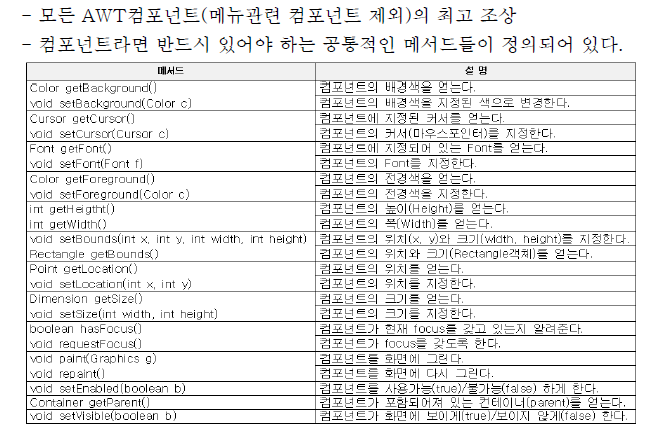 AWT의 구성은 다음과 같다.